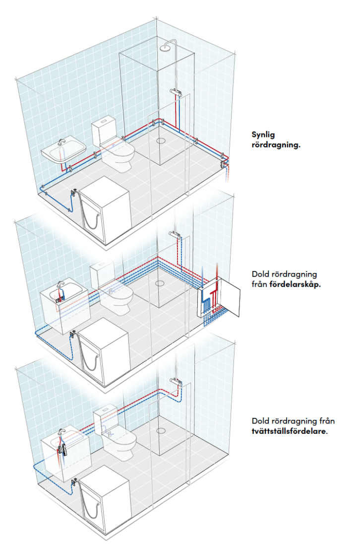 Tappvattenledningar som är dolt placerade och inte går att inspektera ska utföras utan fogar. Det gäller till exempel ledningar i schakt, väggar, bjälklag eller bakom fast inredning.