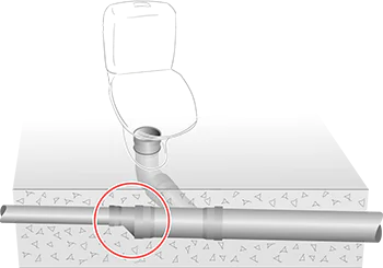 Dimensionsförminskning i spillvattenledning innan anslutning av WC-stol utförs enligt bild 4.4.1c.